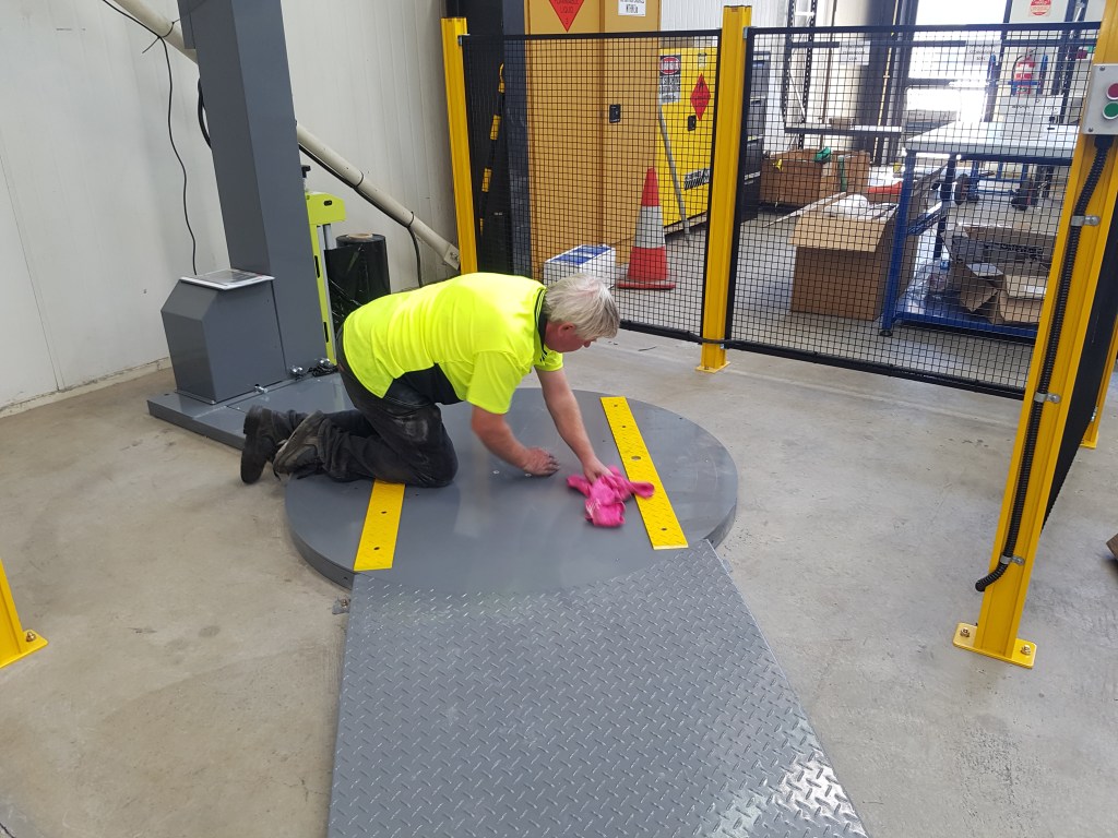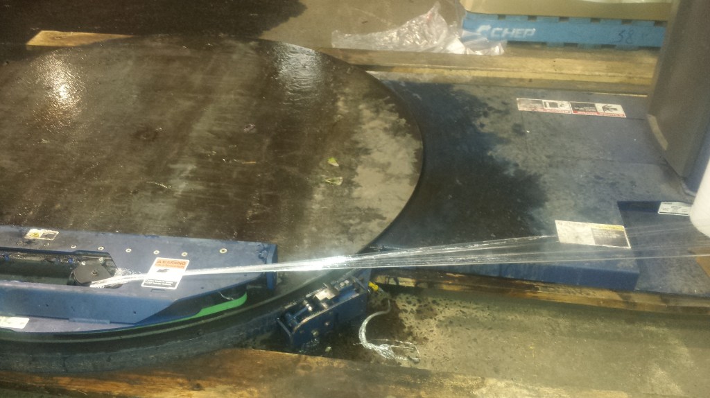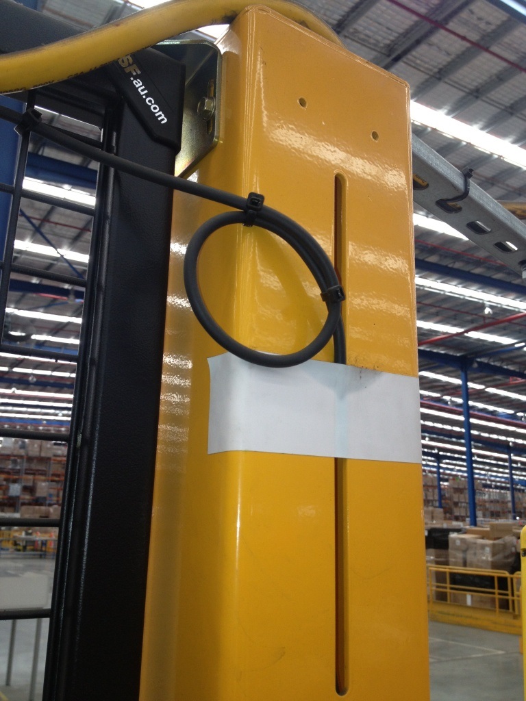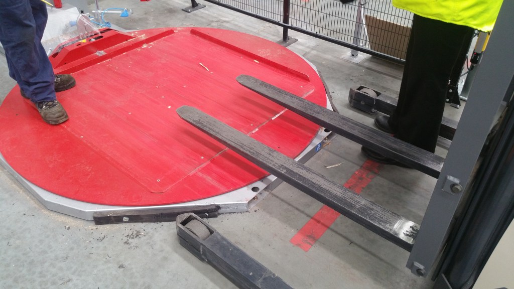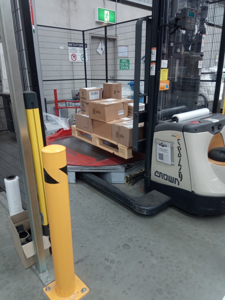 A simple solution we camew up with for loading pallets with Crown walkie stackers – no more double movements and sliding pallets !